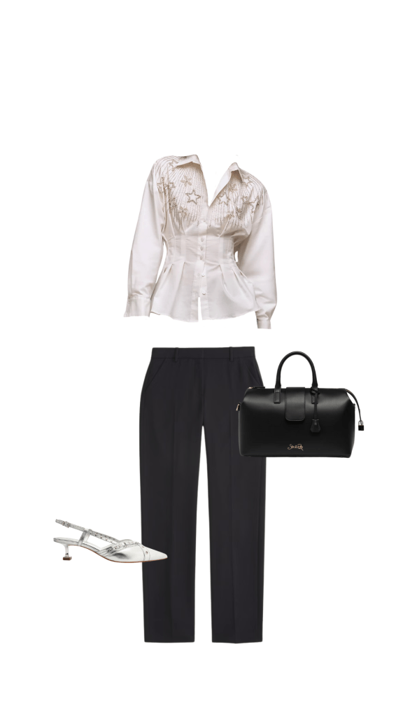 But that doesn’t mean we give up on looking good. Essential to good office style is the back-up outfit. The outfit that you can always turn to, that you’re always comfortable in and that you always feel confident in. I’m talking about that simple top and trouser combo that you’re able to refresh depending on the accessories you pair it with, that you don’t have to think about—you can just throw it on. It obviously doesn’t have to be a top and trousers—it’s just something easy that doesn’t feel like an obvious outfit repeat when you throw it on once or twice a week. Something that aligns with your style, minus maybe a bit of the effort.