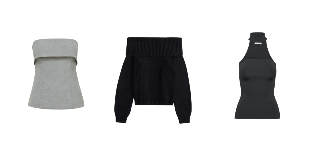 Let’s start with tank tops—undoubtedly a wardrobe staple, with a million iterations. Your simple tank tops serve a purpose and will ever go out of style, but they can feel useless when you want to put together an outfit that feels a little nicer or cooler. So what do we swap our plain tanks for? I’m loving tops with an attached neck tie, or mock necks with cut outs to add a little dimension to the higher neck line. High necks with low backs for contrast are also great, or if you want to go strapless, a foldover neckline looks so chic.