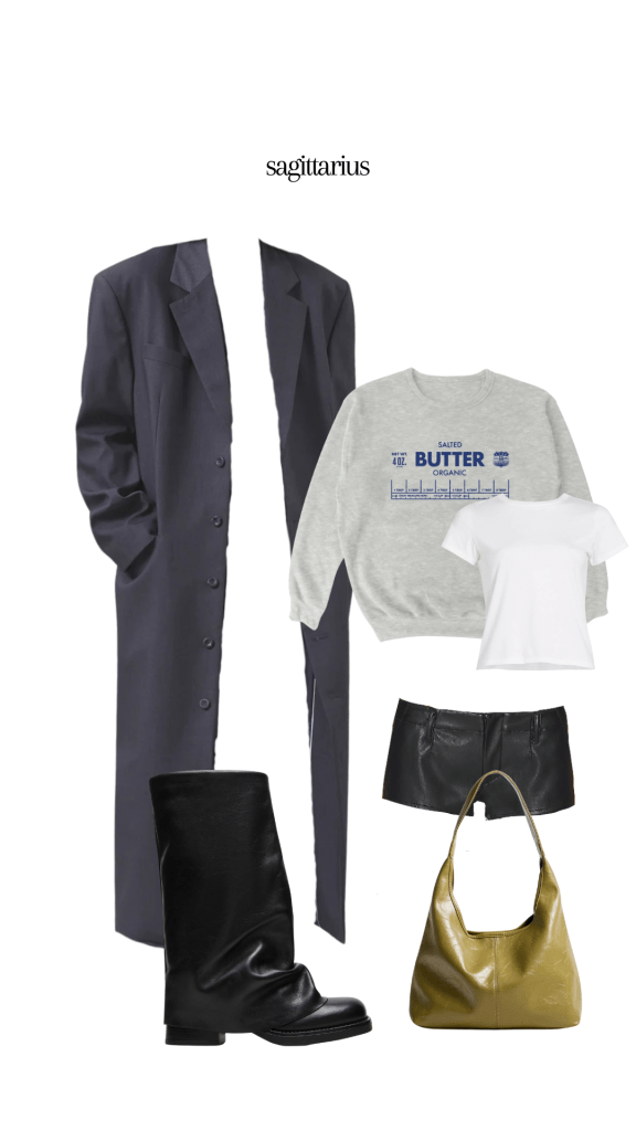 When it comes to her style, Sag values a certain degree of utilitarianism in her outfits. It’s not that she doesn’t values style—she’s one of the coolest and most creative dressers of the zodiac—it’s more that she puts on outfits like she’s always ready to jump on a flight. She has a unique ability to dress up a sweatshirt or style down a dress.