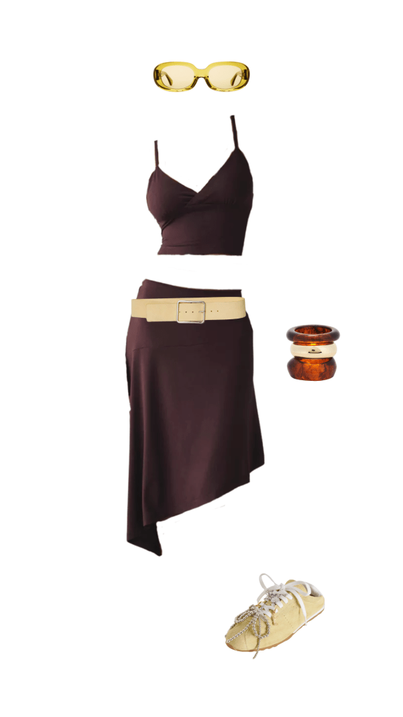 Something like a matching set made of cotton or breathable knit can be so stylish and comfortable, especially if you go for a darker color like a rich chocolatey brown or a deep vibrant shade that won’t show wear-and-tear as the day goes on.